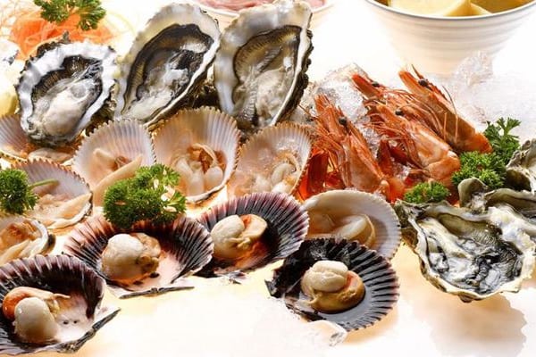 Các loại hải sản như: hàu, tôm, cua không những nhiều canxi giúp xương chắc khỏe mà còn làm sáng da, mịn da và trẻ hóa da hiệu quả. Trong hải sản có chứa hàm lượng kẽm giúp ngăn ngừa mụn hình thành trên da mặt, chống lão hóa, tăng sinh của các sợi collagen.